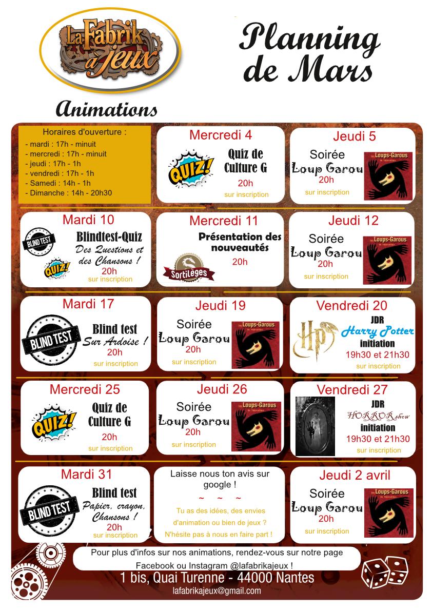Chacune de nos animations est expliquée dans nos évenements sur notre page Facebook. Ici